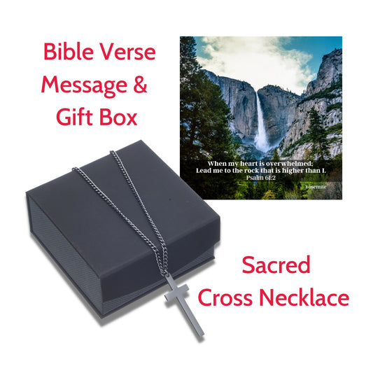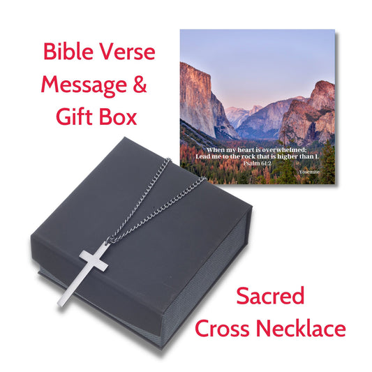 Sacred Cross Necklace, Bible Verse Psalm 61:2, Yosemite