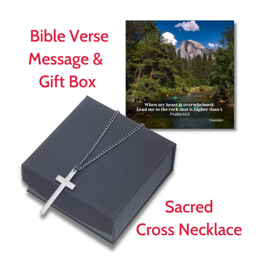 Sacred Cross Necklace, Bible Verse Psalm 61:2, Yosemite River Valley