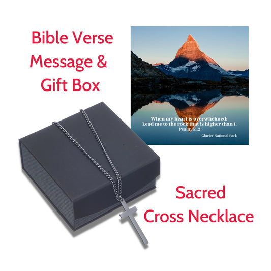 Sacred Cross Necklace, Bible Verse Psalm 61:2, Glacier National Park