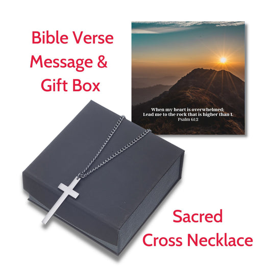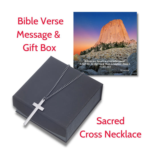 Sacred Cross Necklace, Bible Verse Psalm 61:2, Wyoming