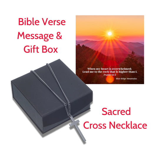Sacred Cross Necklace, Bible Verse Psalm 61:2, Blue Ridge Mountains