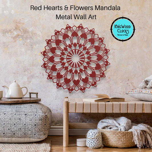 Hearts and Flowers Mandala Metal Wall Art