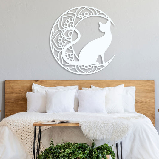 Cat In The Moon Mandala Metal Wall Art