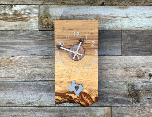 SOLD - KingWood Live Edge Texas Pecan Slab Wall Clock "Texas Love"