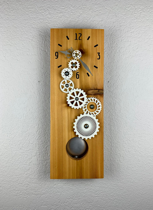 SOLD- KingWood Cedar Pendulum Wall Clock with White Gears