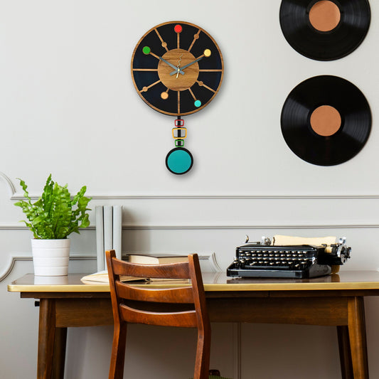 SOLD Pendulum Wall Clock w/ Gears, Cedar & Silver